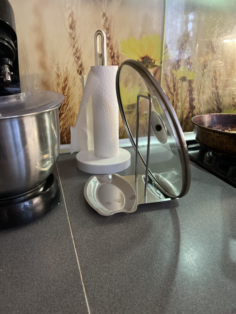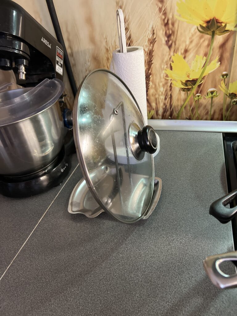 Подставку под крышки так же можно использовать для разделочной доски, тарелки, крышки от кастрюли любого размера.